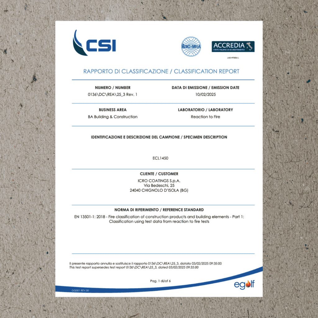 ICRO ha ottenuto le certificazioni Certiquality: UNI EN ISO 14001:2015 come sistema di gestione ambientale certificato e UNI EN ISO 9001: 2015 per l’attività di Ricerca & Sviluppo, produzione e vendita di smalti e vernici speciali, tinte e ausiliari per l’industria. Nel 2009 ICRO COATINGS ottiene la certificazione del proprio sistema di gestione per la sicurezza in conformità alla norma BS OHSAS 18001:2007, successivamente convertita in UNI ISO 45001:2018. ICRO COATINGS si trova nel 17% delle aziende migliori valutate da EcoVadis, ottenendo la Silver Medal nel 2021 e 2022, nel settore Fabbricazione di pitture, vernici e smalti, inchiostri da stampa e adesivi sintetici. Dal 2022 ICRO COATINGS ha ottenuto la certificazione Green Guard Gold per la serie poliuretanica. I criteri usati da Green Guard sono alla base dei crediti LEED, vernici per mobili a basse emissioni. Sempre nel 2022 l’azienda dopo un lungo studio di Life Cycle Analysis (LCA) ha ottenuto, prima azienda del settore, la certificazione ISO 14067:2018, per la capacità di calcolo per ogni singolo prodotto verniciante della Carbon Footprint (CFP Systematic Approach) dalla culla al cancello.